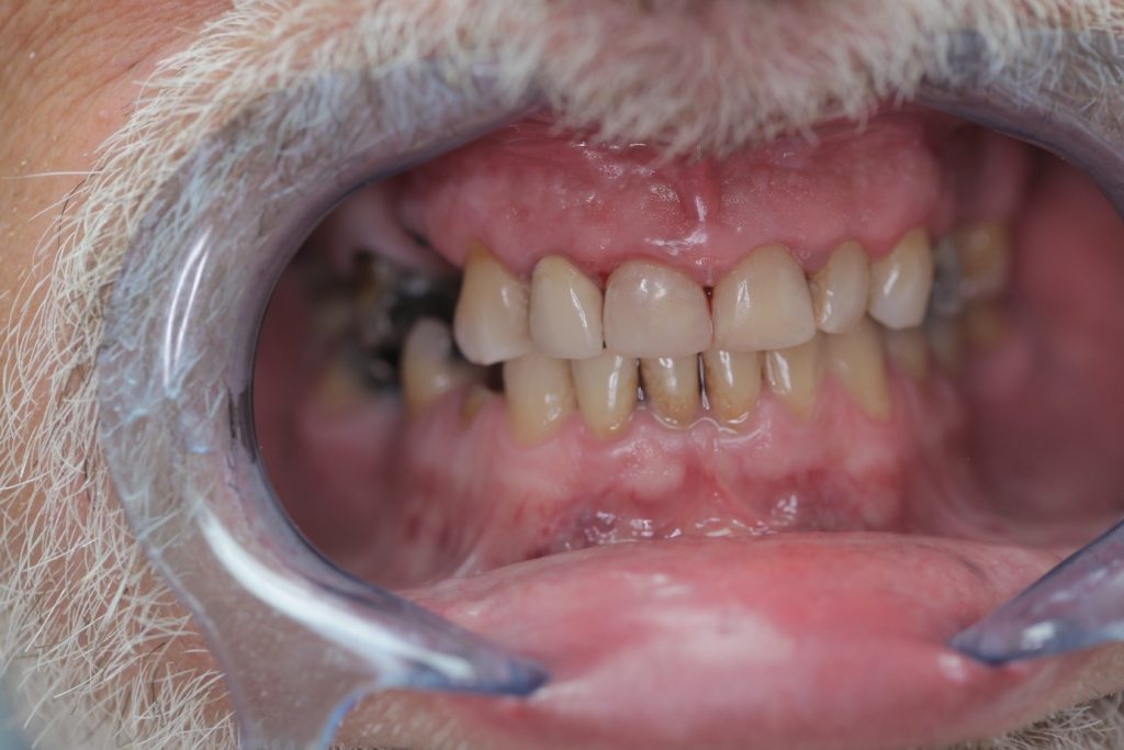 A male patient, aged 67, reported to our clinic with the aim of having his condition assessed. He received a detailed treatment plan for his dental problems, which meant the fabrication of a full-arch bridge for his upper jaw. During the patient’s 2-day stint in Hungary we tried to focus on dealing with the most critical problems.