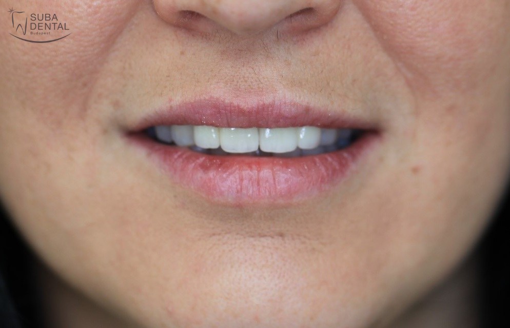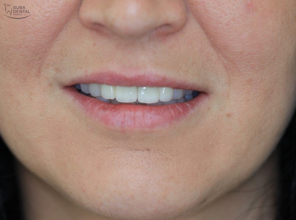 Once the teeth were filed down and prepared a precision impression was taken thereof. Tartar removal and Zoom 2 in-office teeth whitening were performed to be able to match the colour of the all-ceramic crown to the restored colour of natural teeth and achieve a perfect smile. The patient’s every single request and photographs were forwarded to the dental technician.