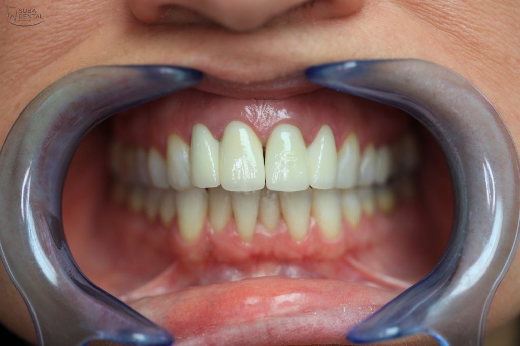 If no adjustments are required following the preliminary trial fitting, the crowns are given their final glossy finish. With the permanent crowns cemented on our patient recovered his self-esteem and feels at ease to smile again.