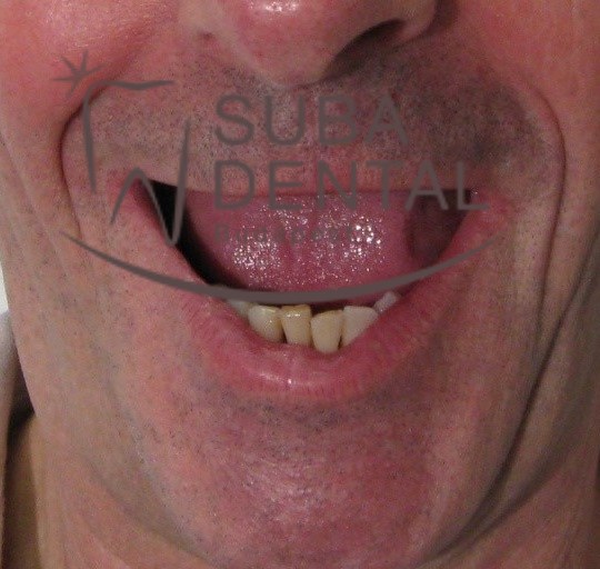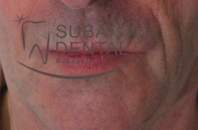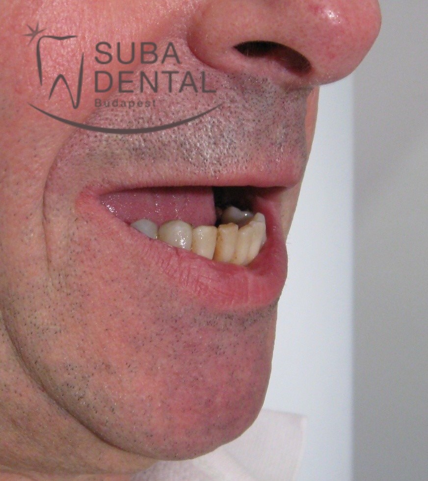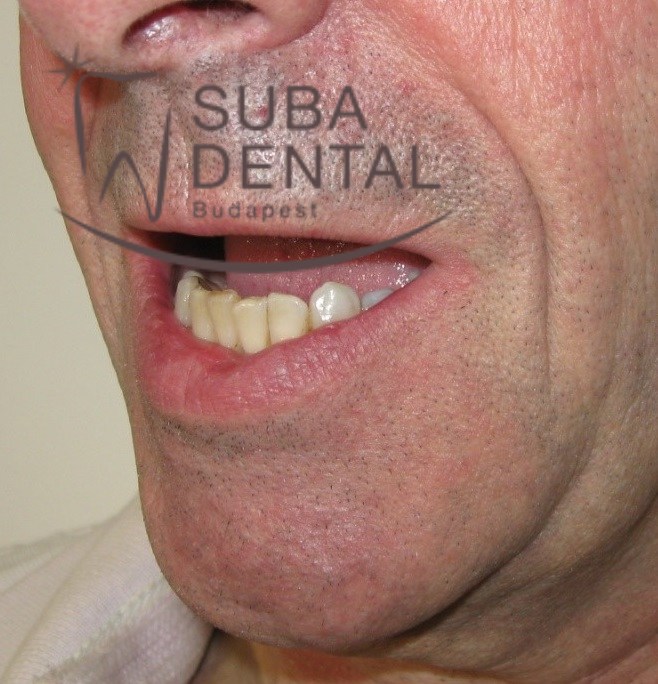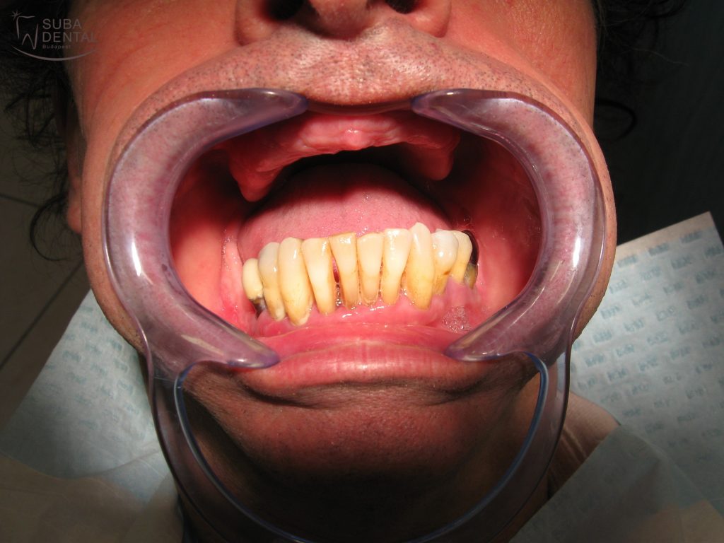 - Súlyos, kezeletlen fogágybetegsége miatt már korábban elvesztette felső fogait és alsó fogainak egy részét.