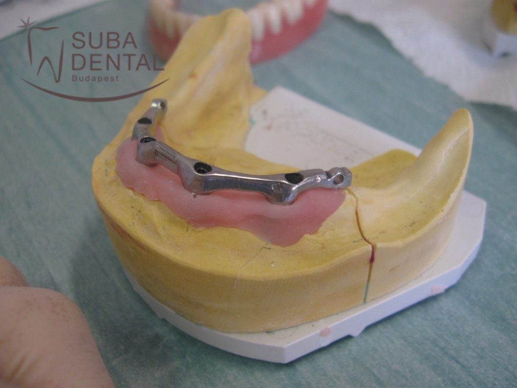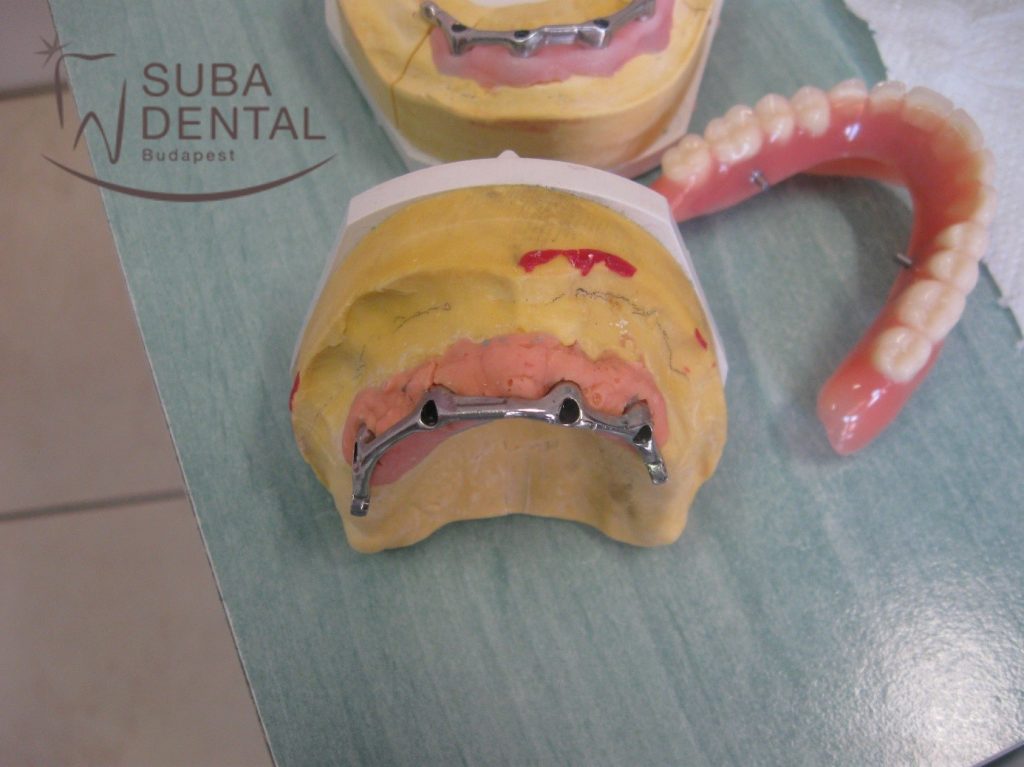 Felső 4 implantátumra készült stég és a műíny a mestermintán